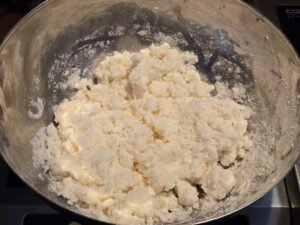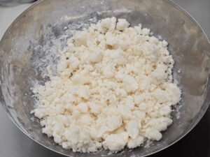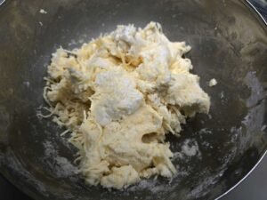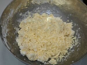 - Adicionar o queijo à massa de pão de queijo.