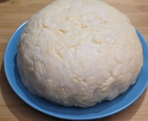 - Misture o queijo na massa de pão de queijo até ficar homogênea.