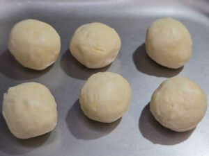 - Faça uma bola com a massa de pão de queijo e deixe descansar um pouquinho antes de começar a modelar